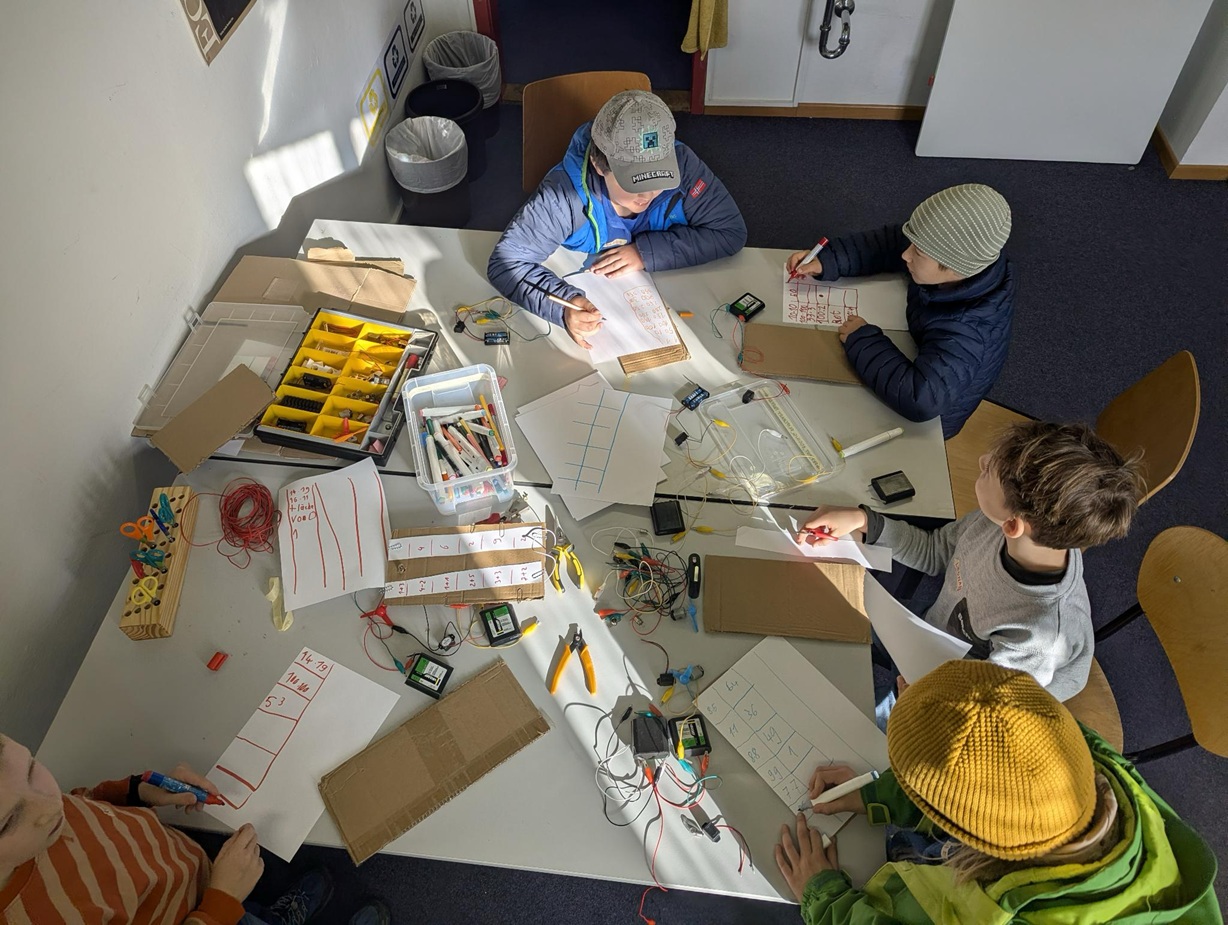Mit Markus entdeckten die Kids die Welt des Programmierens und ließen ihrer Kreativität freien Lauf! Mit dem Calliope mini wurden dann sogar erste digitale Projekte gestaltet. Und das alles ohne Vorkenntnisse – nur mit Neugier und Spaß an Technik!