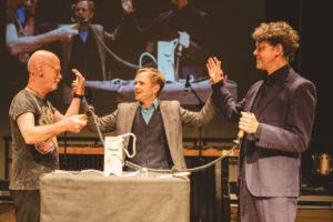Unsere beiden Sound of Science-Shows mit der Musikschule Freising haben bewiesen: Akustik-Fakten sind schön! Am Gala-Abend und Familiennachmittag führten curiocity Co-Initiator Kim und Odilo Zapf, Chef der Freisinger Musikschule. Auf der Bühne unterstützt wurden sie von Die Tolle Musikschul Band (DTMB) unter der Leitung von Stephan Treutter, ihres Zeichens eine kleine, großartige Big Band.